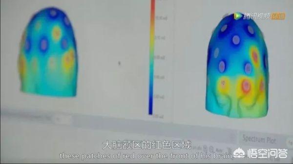 此时,他们的大脑额叶区域显示的传感器信号呈现一片红色。