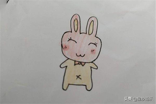 5、最后我们就来给小兔子涂颜色吧,一定要涂粉红的脸蛋。小朋友也可以发挥自己想象力,给小兔子涂其他好看得颜色。