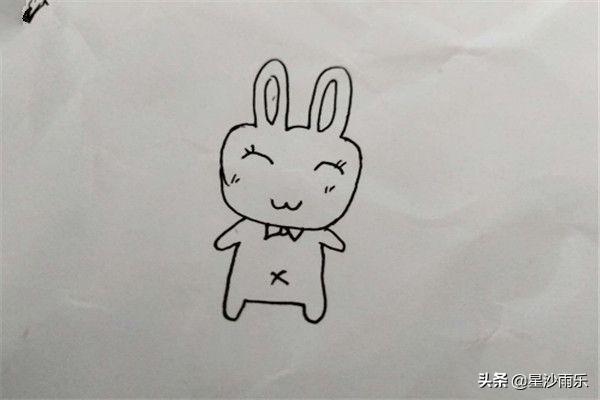 3、接着画上身体,是一只蹲着的小兔子,观察腿的变化