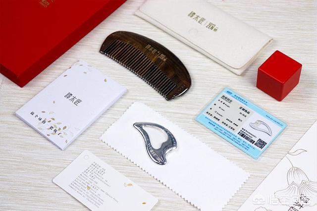 我是第一次接触足银按摩板,从盒子背面参数看,一帧用了999的足银,重量大概30g;谭木匠的木梳,用的是古夷苏木,也叫沉贵宝木,所以叫做沉贵宝木梳。除银、梳两件和说明书之外,配件还有银材质检测证书、收纳袋(可双层收纳)、银饰品清洁绒布。