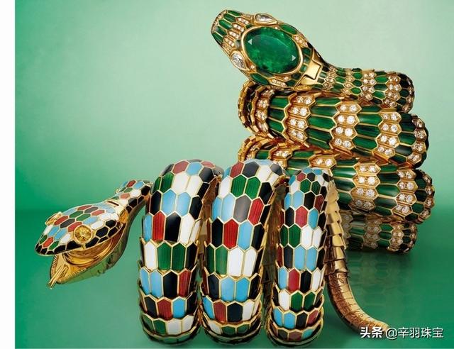 在埃及和希腊神话里,人们都相信蛇的蜕皮现象代表着重生、治愈和生命。公元前 46 年,埃及艳后第一次来到罗马帝国,手上就佩戴了蛇形的黄金手镯。两千年后的 20 世纪,伊丽莎白 · 泰勒出演影片《埃及艳后》,委托宝格丽量身打造了一款 Serpenti 蛇形手镯,1968 年,手镯创作完成,用 K 金模仿蛇的身体,眼睛是蛋面红宝石,身体镶翡翠,头尾用圆形和水滴形钻石修饰,她佩戴这款手镯以尼罗河女王的身份亮相,惊艳了整个六十年代。