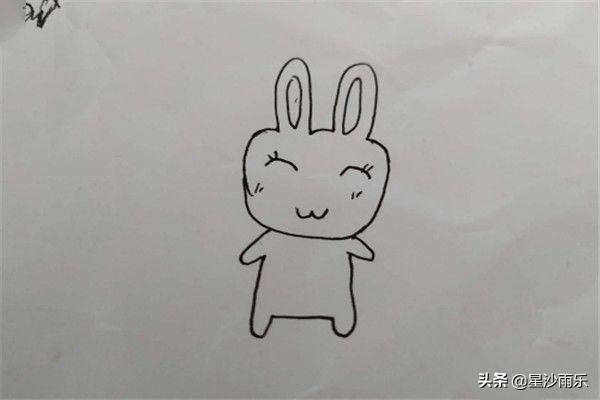 3、接着画上身体,是一只蹲着的小兔子,观察腿的变化