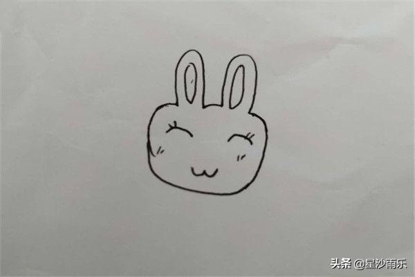 1、首先画出兔子长长的耳朵,左耳朵比右耳朵长,在右耳朵下画出一个小蝴蝶结,然后画出圆圆的脸,在脸上画出眼角、鼻子和嘴巴。